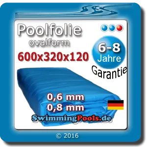 Poolfolie 600 x 320 x 120 cm oval - Adriablau
