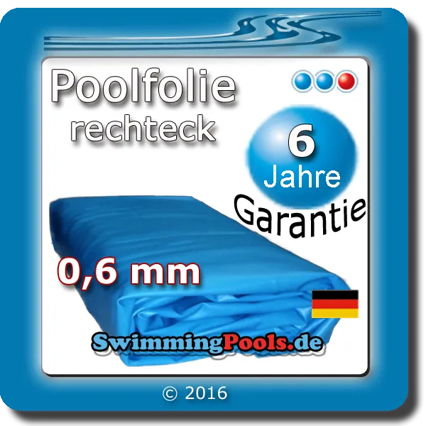 Bei der Verarbeitung der Poolfolie werden ausschließlich Qualitätsrohstoffe namhafter Hersteller verwendet. Die Poolfolien rechteckig 0,6 mm werden ohne oder mit Eckausbildung der Keilbiese gefertigt. Sie ist sehr widerstandsfähig und dank des dauerelastischen Materials sind auch bei hohen Minustemperaturen keine Frostschäden zu befürchten. Diese Poolfolien wurden eingehend getestet und erfüllen sogar die europäische Norm für die Sicherheit von Kinderspielzeug EN 71 Teil 3 (Migration von Schwermetallen. Die geforderten Grenzwerte werden dabei nicht nur eingehalten sondern um ein Vielfaches unterschritten. Unsere Poolfolie ist CE-zertifiziert, geprüft nach KSW und nach hohen Qualitäts- und Umweltstandards in Deutschland hergestellt.