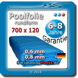 Poolfolie rund 700 x 135 cm in den Farben Weiss, Sandfarbe, Grau, Hellblau und Dunkelblau | Stärke 0,8 mm - alle Größen im Menü auswählbar.