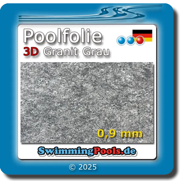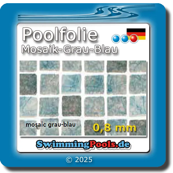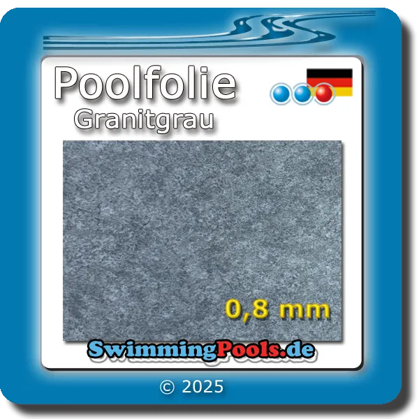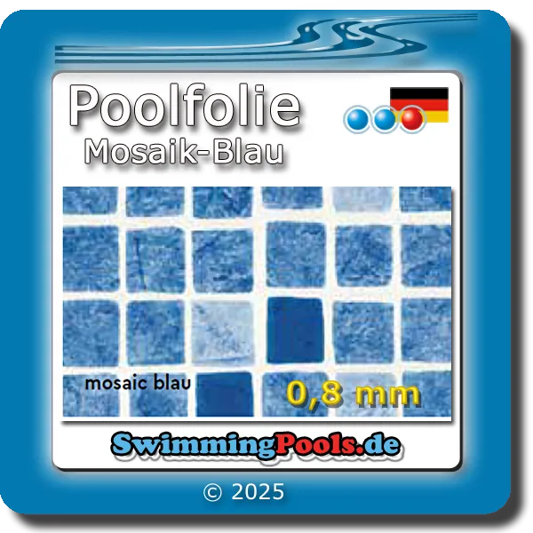 Wählen Sie oben über dem Preis, ihre gewünschte Folienfarbe und die gewünschte Poolfolien Größe aus. Es stehen 16 verschiedene Farben zur Auswahl: Mosaik Sand, Blau, Grau-Blau oder Granit Blau, Grau, Grün oder Sand und viele weitere