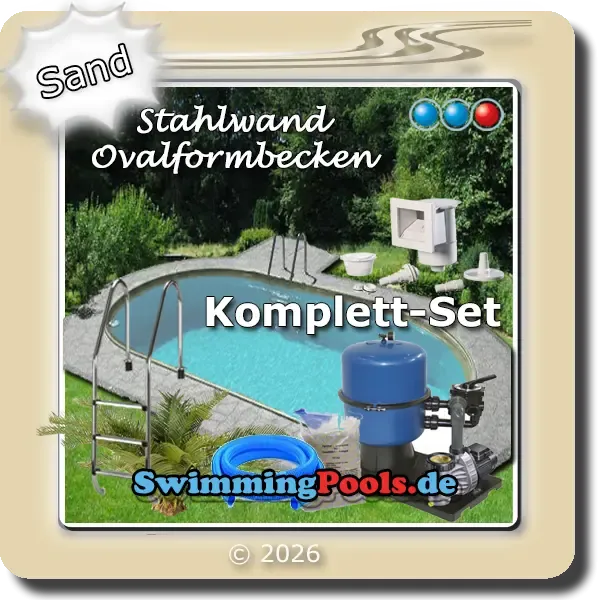 Alle ovalen Stahlwandpools, die hier angeboten werden, sind feuererzinkt, mit einer Schutzlackierung versehen und haben zusätzlich eine Kunststoffbeschichtung auf der Außenseite. Ovale Stahlwandpools sind nur für die Einbauweise im Erdreich geeignet. Stützmauern sind an den Seitenwänden anzulegen. Außerdem empfehlen wir eine Betonbodenplatte. Der Stahlmantel hat bei Becken mit einer Tiefe von 120 cm eine Dicke von 0,6 mm, bei 135 cm bzw. Schwimmbecken mit einer Tiefe von 150 cm 0,8 mm. Die Schwimmbadfolie hat bei allen Becken eine Stärke von 0,8 mm und ist in Sandfarbe gehalten. Die Poolfolie aus PVC, ist Frostbeständigkeit und UV-Stabilisiert. Sie trägt das CE-Zertifikat und kann dank einer zusätzlich angeschweißten Biese leicht am Beckenrand angebracht werden. Bei der Montage dieser Stahlwandpools ist kein Verschrauben erforderlich, stattdessen werden sie mit einem mitgelieferten Alu-Steckprofil verbunden. Desweiteren werden Kunststoff Profile für den Boden und ein schöner Kombihandlauf in der Farbe Sand mitgeliefert. Alles in allem, ein sehr schönes robustes Schwimmbecken made in Germany.