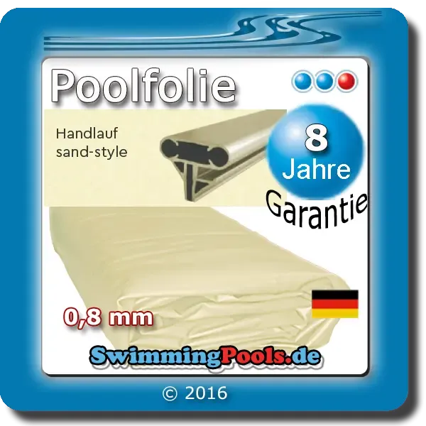 0,8 mm = 8 Jahre Garantie Mehr Info`s Poolfolie ( für Garantie bitte Unterlegvlies verwenden )