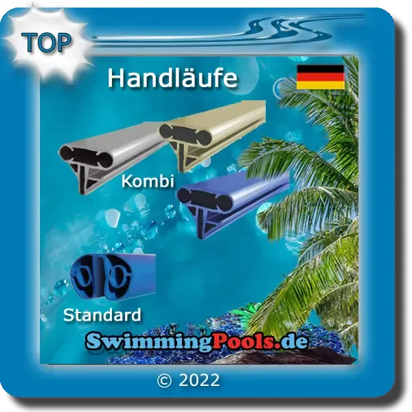 Mehr Zubehör zum Ovalpool 490 x 300 x 150 cm wie Filteranlagen und Beckenleitern, finden Sie in den jeweiligen Kategorien. Auf Wunsch stellen wir auch mit Ihnen ein passendes Poolset zusammen oder Sie wählen sich ein fertiges Komplett-Set aus dem im Poolshop vorhandenen Sets aus. Übrigens sind auch andere Farben der Folien mit passendem Handlauf vefügbar.