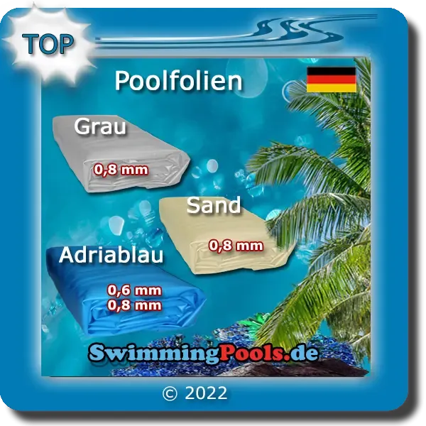 Entscheiden Sie sich, ob Sie lieber eine stärkere Innenauskleidung in 0,8 mm mit 8 Jahren Garantie wollen ( mit Aufpreis ), oder es bei der Standard Variante mit 0,6 mm starker Poolfolie, für dieses schöne ovale Stahlwandbecken 490x300x150 cm belassen wollen. ( ohne Aufpreis ). Sollten Sie sich für die dickere Poolfolie entscheiden, so wählen Sie oben über dem Preis durch anklicken, 0,8 mm aus.